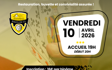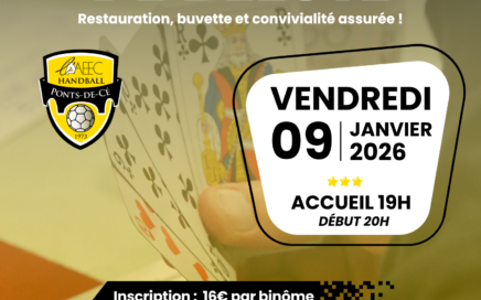 Le Night Handball fait son grand retour à Ligeria !VENDREDI 13 FEVRIER Le principe est simple : Sortez vos plus belles tenues fluos ou blanches pour passer une soirée de folie ! 7 € par participant – inscription : https://www.helloasso.com/associations/aaeec-hanball-les-ponts-de-ce/evenements/night-handball Buvette et restauration sur place ; possibilité de réserver en même temps que l’inscription. On […]