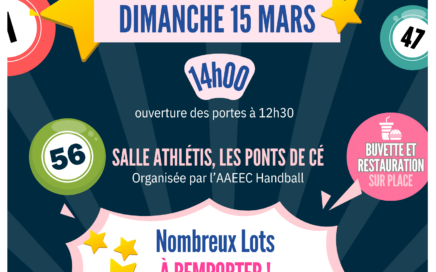 Super Loto animé par Armelle GROLLEAU Ouverture des portes 12h30 début du loto 14h Salle ATHLETIS 50 Avenue de l’Europe 49 130 LES PONTS-DE-CE 3 € la carte La planche de 6 : 10 € La planche de 10 : 15 € La planche de 12 : 20 € Formule à 15 € – 20 […]